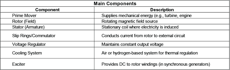 • Mechanical energy rotates a coil or rotor within a magnetic field, generating electricity in the stator windings.